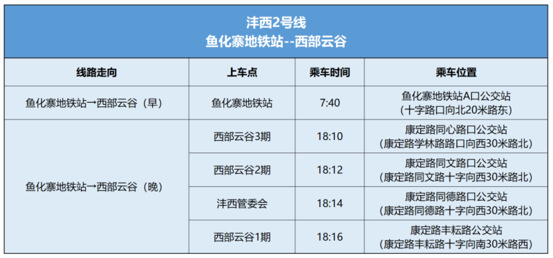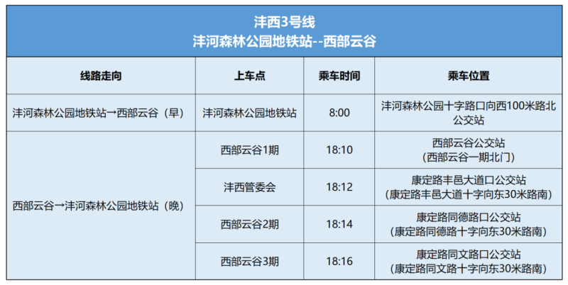 晚班车:18:10西部云谷3期(康定路同心路口公交站:康定路学林路路口向西30米路北)
