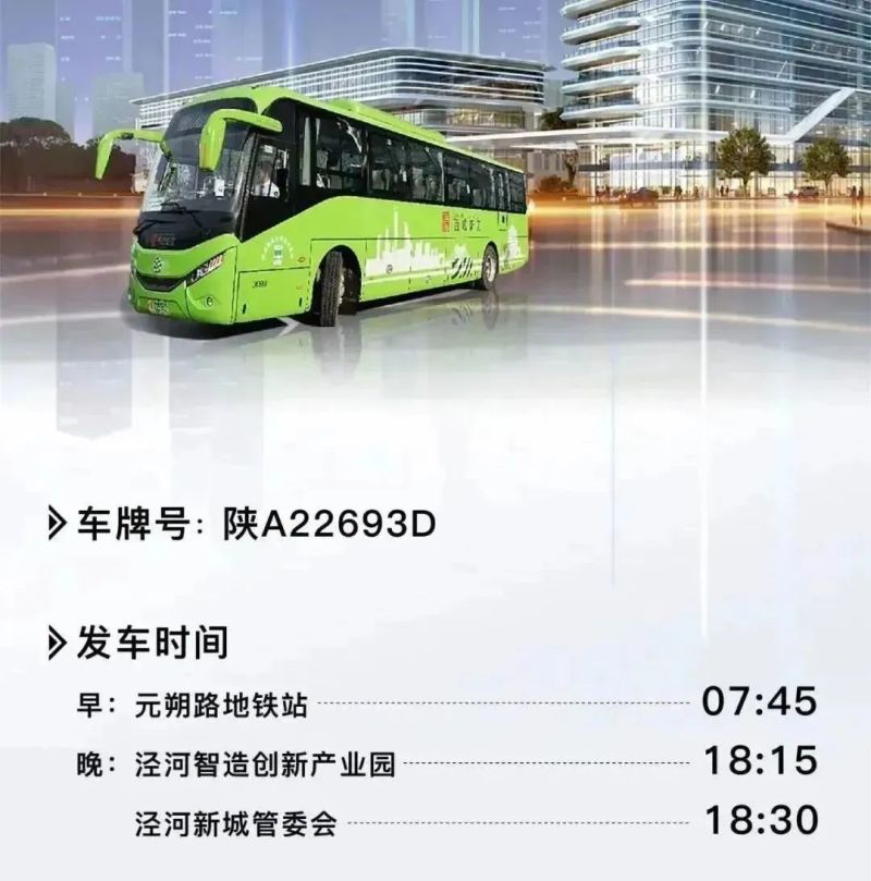 服务通勤车线路共设置西安市元朔路地铁口(D口)、泾河新城产业孵化中心、秦创原(泾河)智造创新产业园三站,衔接园区与新城、市区重要交通枢纽点。全程长27公里,时长约45分钟,全天共2班次,支持付款码支付乘车。未来,新区将持续关注入区企业需求,开展通勤服务卡设置及发放预备工作,进一步健全服务体系,打通群众公交出行“最后一公里”,不断提升群众的安全感、归属感与幸福感。