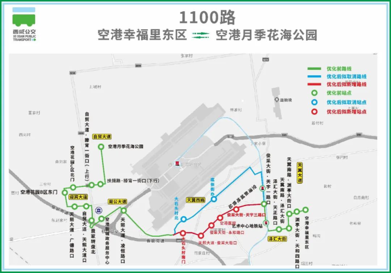 新增站点:大石头村南门、天熙大道·俊采大街口、俊采大街·永和路口、空港医院、俊采大街·天宇三路口