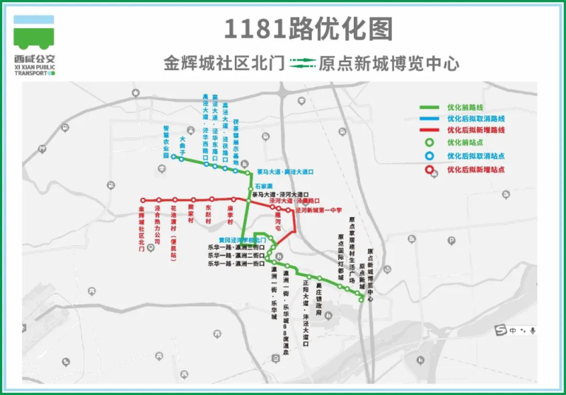 新增站点:金辉城社区北门、泾合热力公司、花池渡村(便民站)、樊家村、东赵村、唐李村、泾河大道·泾晨路口、雁河屯、泾河新城第一中学。