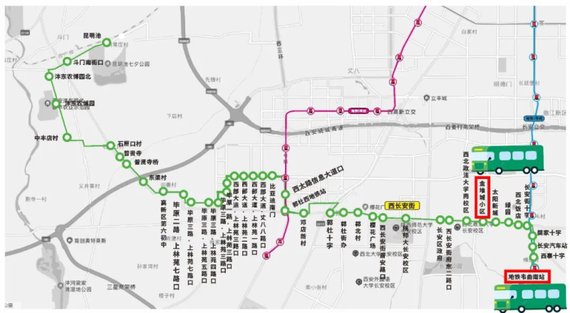 线路起终点:昆明池-地铁韦曲南站