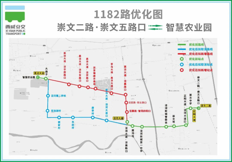 原线路:由智慧农业园始发,沿花池渡村、泾河大道、正阳大道、崇文二路行驶至崇文二路·崇文五路口。