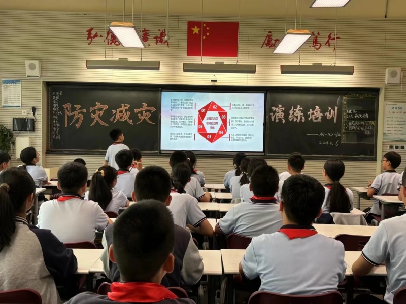 各学校开展班级防灾减灾主题班会、情景剧表演、观看安全自救技能培训视频等方式,增加防灾减灾知识储备,提升安全自救互救能力。