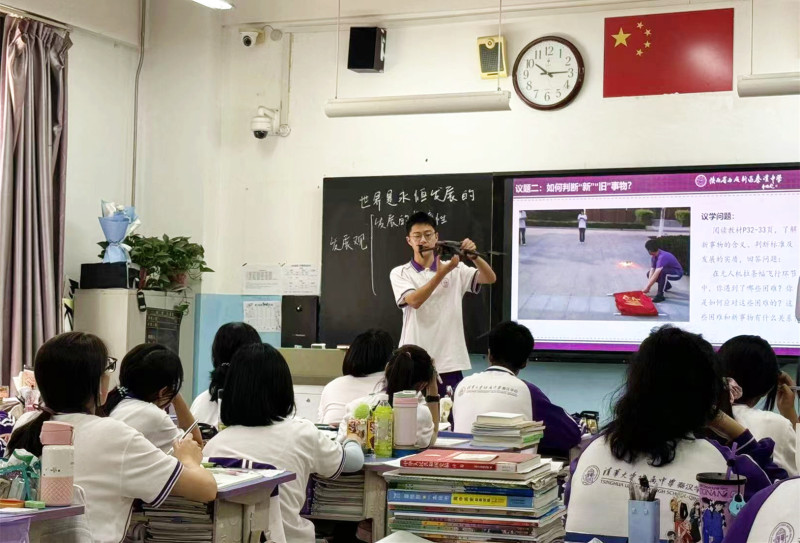 “同学们,自然界、人类社会和人的认识都是不断发展变化的,大家思考一下我们班在用无人机拉条幅飞行过程中遇到了哪些困难?这与新事物之间又有什么关系?”在西咸新区秦汉中学高一(13)班的政治课堂上,授课教师刁杰通过引导学生思考实践中的困难,带领孩子们从自身经历出发,感受事物发展变化的过程。这样生动的课堂,每天都在新区的各个学校中,为孩子们带来多元化的思维体验。