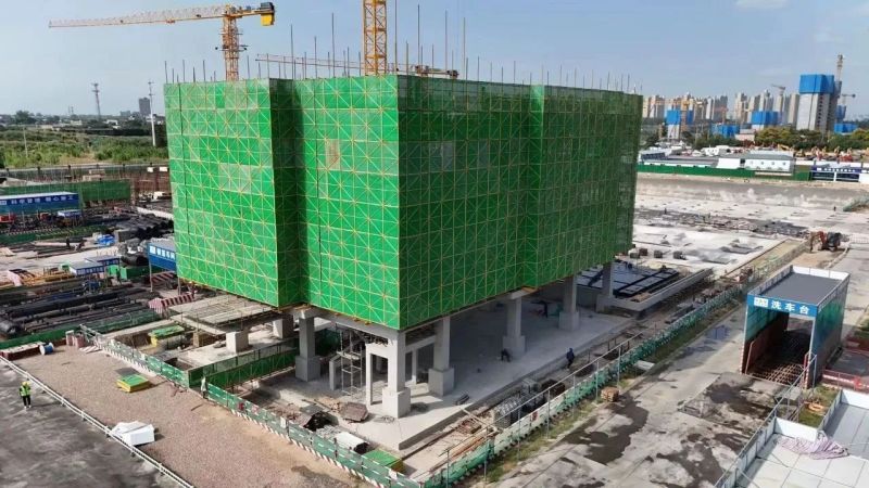 截至目前,学校行政楼主体结构已经封顶,图书馆、多功能厅正在进行一层满堂架搭设施工,教学楼中段及北段正在进行隔震层施工。