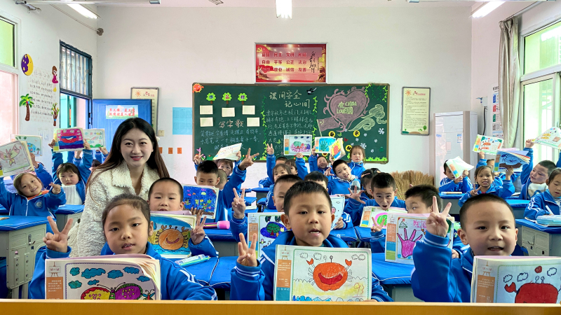 如今,学校虽已配备专用美术室,但靳雪婷仍特意保留着教室东墙的水泥地——那里留存着2020届学生绘制的“成长树”,树叶上写满了“画遍秦岭”“当农业科学家”等纯真梦想。谈及教学生涯中最深刻的感悟,靳雪婷直言:“最好的教具永远是孩子身边的生活。”