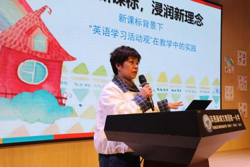 高级教师、陕西省基础教育学科带头人、西咸新区沣西文教园第一小学副校长杨小丽带来《英语学科核心素养的培养路径与教学策略》专题讲座。作为新区本土名师,杨老师以政策为纲、实践为据,系统解读核心素养内涵,分享“新课标背景下英语学习活动观在教学中的实践”,针对“核心素养落地难”问题提供具体解决方案,既有理论高度,又扎根新区教学实际,为参会教师搭建起“理论-实践”的桥梁。