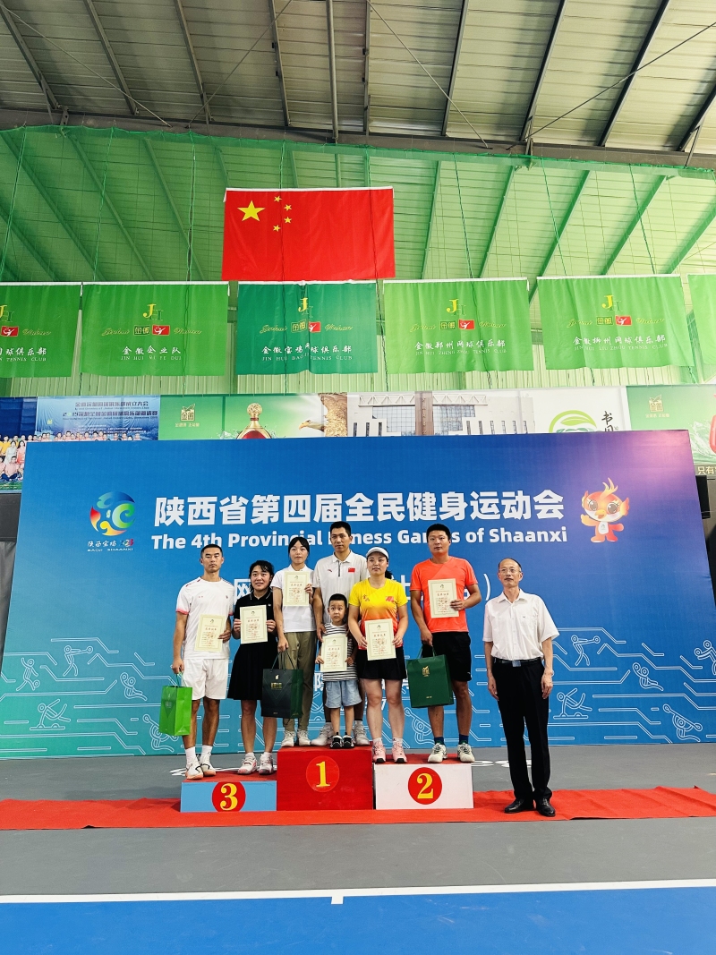 7月23日,陕西省第四届全民健身运动会网球比赛(社会组)在宝鸡高新区金徽网球馆落幕。来自全省各市(区)的13支代表队、120余人在(A组)混合双打、男子单打、女子单打、女子双打、男子双打,(B组)女子双打、男子双打、混合双打八个组别中展开同场竞技。经过4天232场的激烈角逐,西咸新区教育体育局的杜亚玲同志荣获A组单打冠军、女子双打亚军、混合双打亚军。