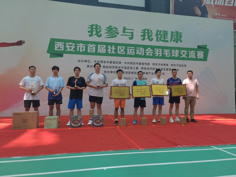 7月15日上午,西安市首届社区运动会羽毛球交流赛,在城市运动公园训练馆开赛,来自全市各代表队的150余人参赛。西咸新区羽毛球代表队在西安市首届社区运动会羽毛球项目交流赛中荣获优胜奖。