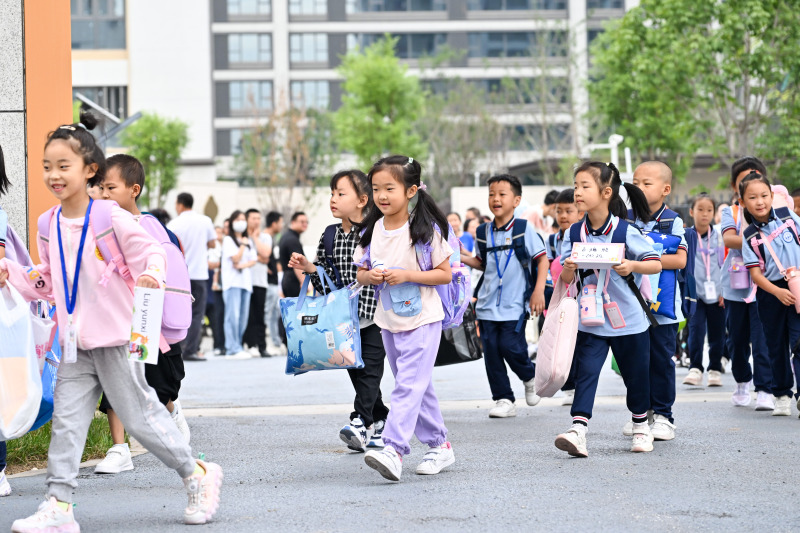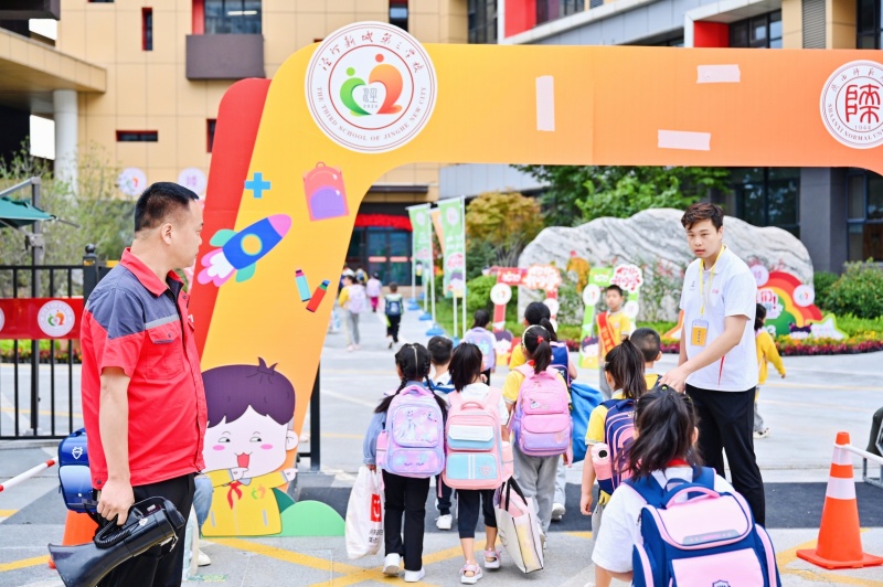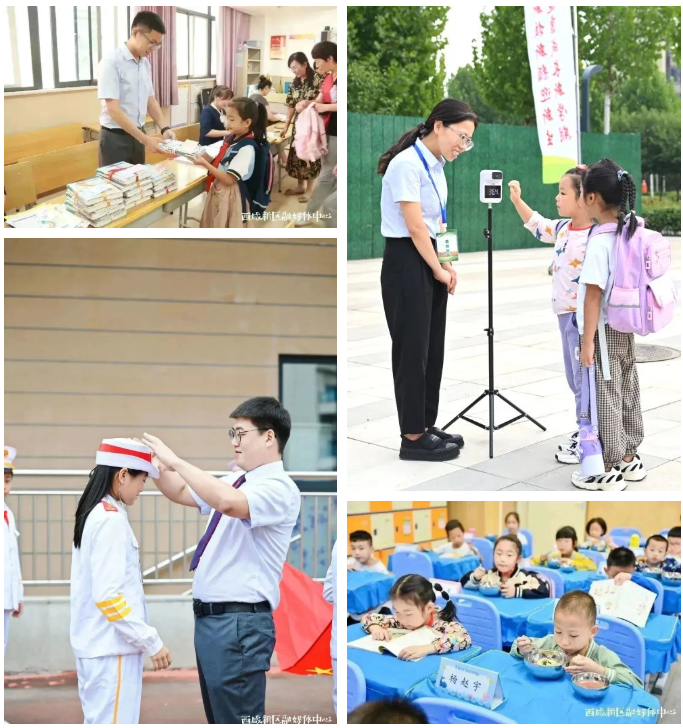 沣西第一小学教育集团总校长龚健辉也有自己的小目标:“开学第一天,我们的学生、家长还有老师们心里都是满满的幸福。未来我们也会将学生和家长的需求放在首位,多方协同,助力孩子们健康成长”。