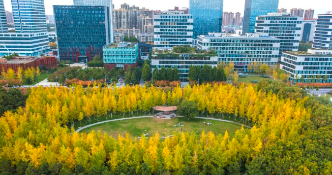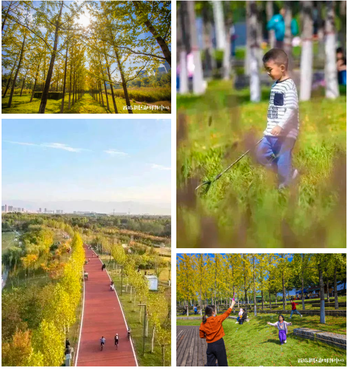 如果想避开人群,沣西中心绿廊是个不错的选择,沿着蜿蜒曲折的林间小道,金黄的银杏叶点缀在绿草坪上,还有野生禽鸟在枝头和湖面嬉戏……秋日之美尽在于此。