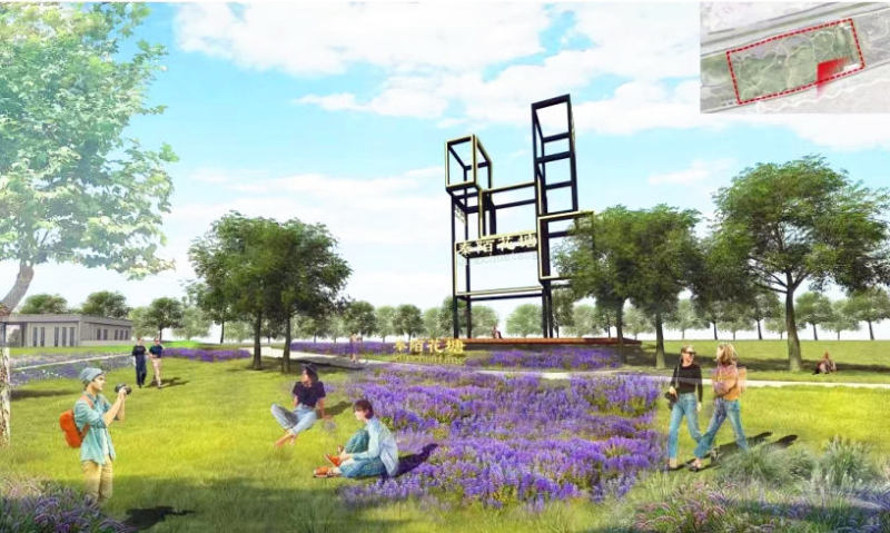 不远处还有正在建设的“兰池花海”将以多层次、有色彩、花相伴的季节性动态景观为基础,配备服务设施和艺术装置,打造具备开展露营、后备厢市场,野花节事、科普教育等活动功能的休闲郊野公园。