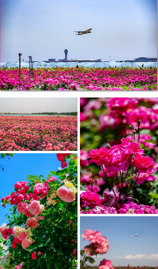 花海毗邻机场,游客们可以漫步花海小径,或驻足于花丛之中,用手机、相机记录下“花海与飞机同框”的别致美景。