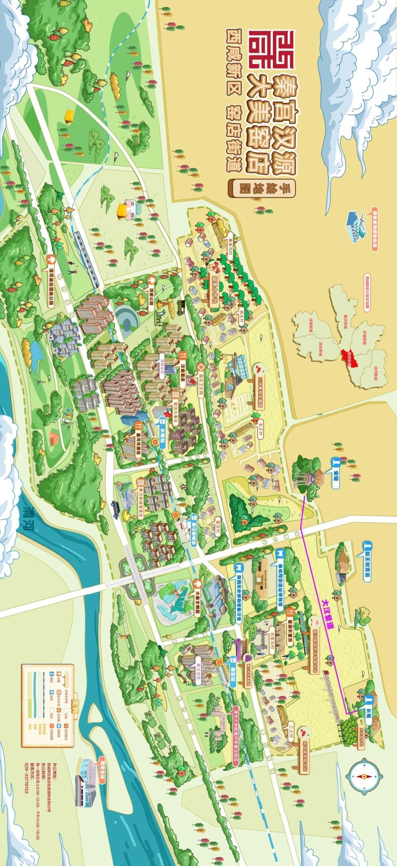 除此之外,窑店街道还为游客朋友们精心准备了《秦宫汉源,大美窑店》手绘地图,带您全面了解辖区的乡村旅游最全攻略。