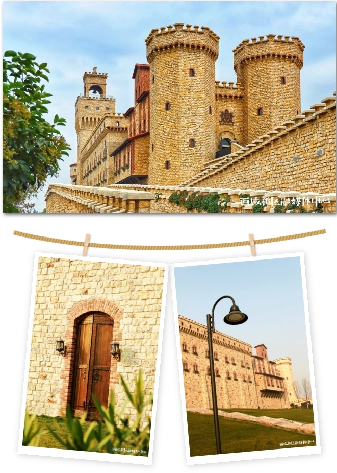 酒庄采用意大利托斯卡纳城堡式建筑风格,4.2万平方米的意式城堡以明黄色为主,原始石块堆砌,红瓦铺顶。漫步庄园内,绿意盎然,葡萄长廊与生态水系相映成趣。多个特色鲜明的室外主题广场,浪漫又休闲,如果运气好,你还可能“邂逅”前来取景拍摄的影视剧组,让你不出国门也能领略到独特的欧式风情。