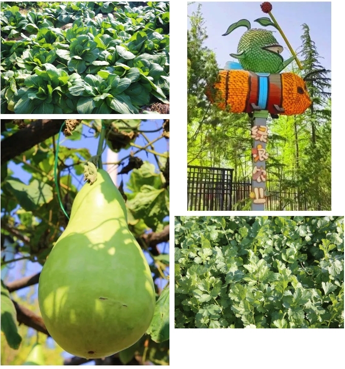 沣东农博园以现代农业技术为主题,每月都有时令蔬菜、水果供大家采摘。现在走进园区,满眼绿色的菜园犹如一幅生动的田园画卷,可谓是“满目琳琅丰稔景,一园蔬果一园歌”。