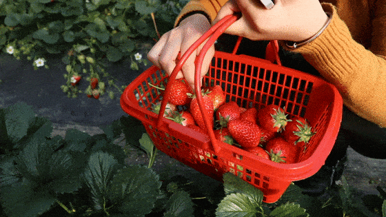 提着篮子在园内穿梭,挑选出最大最红的那几颗,让自己收获满满的成就感,度过周末“莓”好时光。