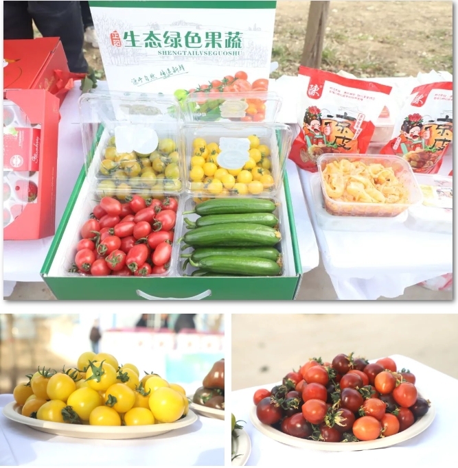 身旁是蔬菜大棚,棚里是挂满藤蔓的圣女果,果香清新。棚外,一场别开生面的产销对接会正在举行。