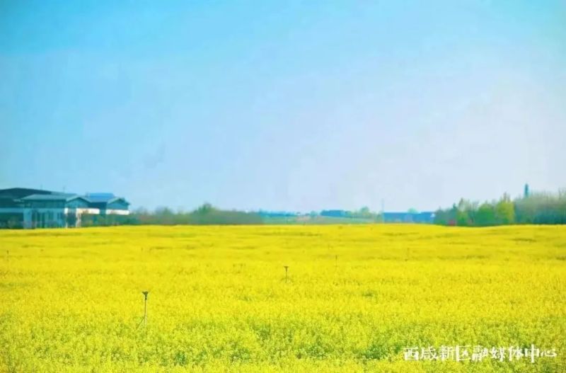 春风拂过,金浪翻滚,在西咸新区随处可见金灿灿的油菜花,极目远眺,大地仿佛被镶上了一层金框。