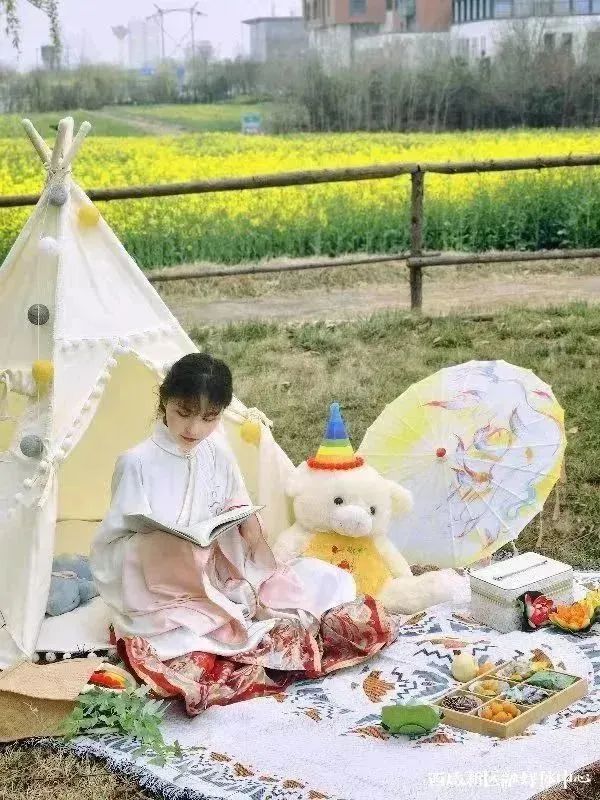 旁边的诗经里小镇,诗意盎然,古韵悠长,远处的西安欢乐海岸•OCT1314摩天轮在蓝天下缓缓转动,打卡油菜花海后,这几处都是休闲娱乐的好去处。