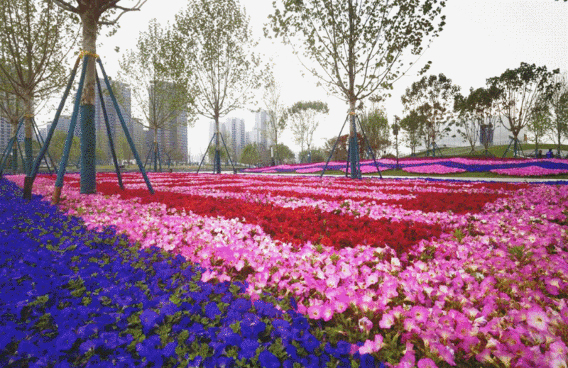 春天的西咸新区目光所及之处皆是繁花似锦,清华附中秦汉学校大门外,紫荆花百朵簇生,开出了一条春色浓郁的紫荆大道。汉阳陵里,50亩樱花落红缤纷,花开花谢皆是美景,如果你没有时间去远点的地方,在新区内的绿地、街角公园也一样不负春色,能源金贸区金湾文化公园内,大片的矮牵牛与三色堇、万寿菊、 欧石竹、鸢尾一起勾勒出五彩缤纷的休憩空间迎接四方来客。