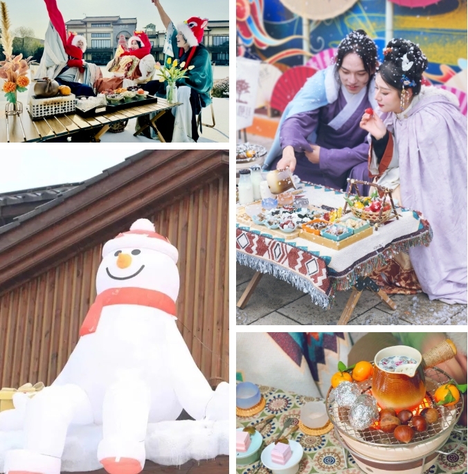 2023年12月31日-2024年1月1日,诗经里元旦冰雪限定主题活动将精彩上演。围炉煮茶音乐会、雪王巡游等一系列以雪为场景的冰雪体验活动,打造出“雪景小镇”,配合着洋洋洒洒的飘雪,舞姿曼妙的古风舞者将在这里上演别致的雪中情景演绎,让你瞬间置身古风经典场景中,体验长安古都风华。
