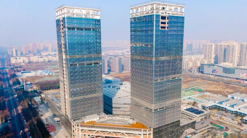 截至目前,项目一二号楼已完成主体施工,正在进行机电安装及幕墙收尾工作,三四五号楼已完成机电安装及外立面的幕墙安装,室外管线施工已完成,正在进行景观绿化施工,即将开始室内精装修施工,预计2025年建成投入使用。