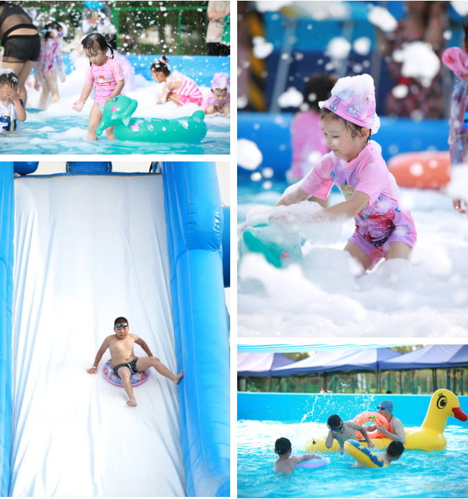除此之外,还有特别设置的露营区,让游客在夏日傍晚时分享受露营的乐趣,全家围坐在一起,感受微风清凉,聆听蝉鸣鸟叫,享受独有的悠闲与自在。特别提醒您,水上乐园超优惠的早鸟票已经上线,大家可通过抖音等平台进行购买。