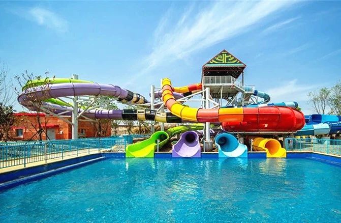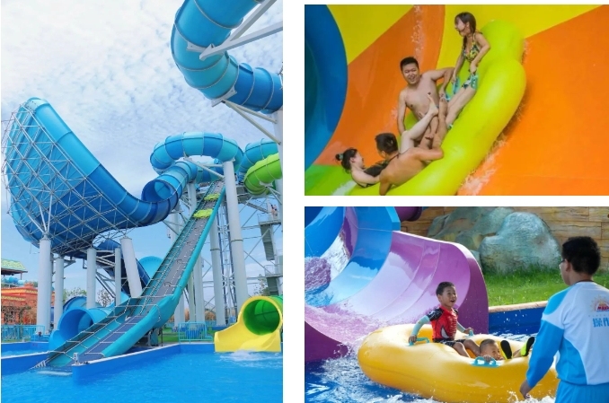 继续向前,你会在右手边看到四条颜色不同、刺激程度不同的滑道,分别是紫蛟、青蛇、赤龙、 兰蟒。四条滑道相互盘旋,伴随360°急速回旋,穿越层层水的阻力。听说红色赤龙是刺激程度最高的滑道,胆大的你不妨一试。