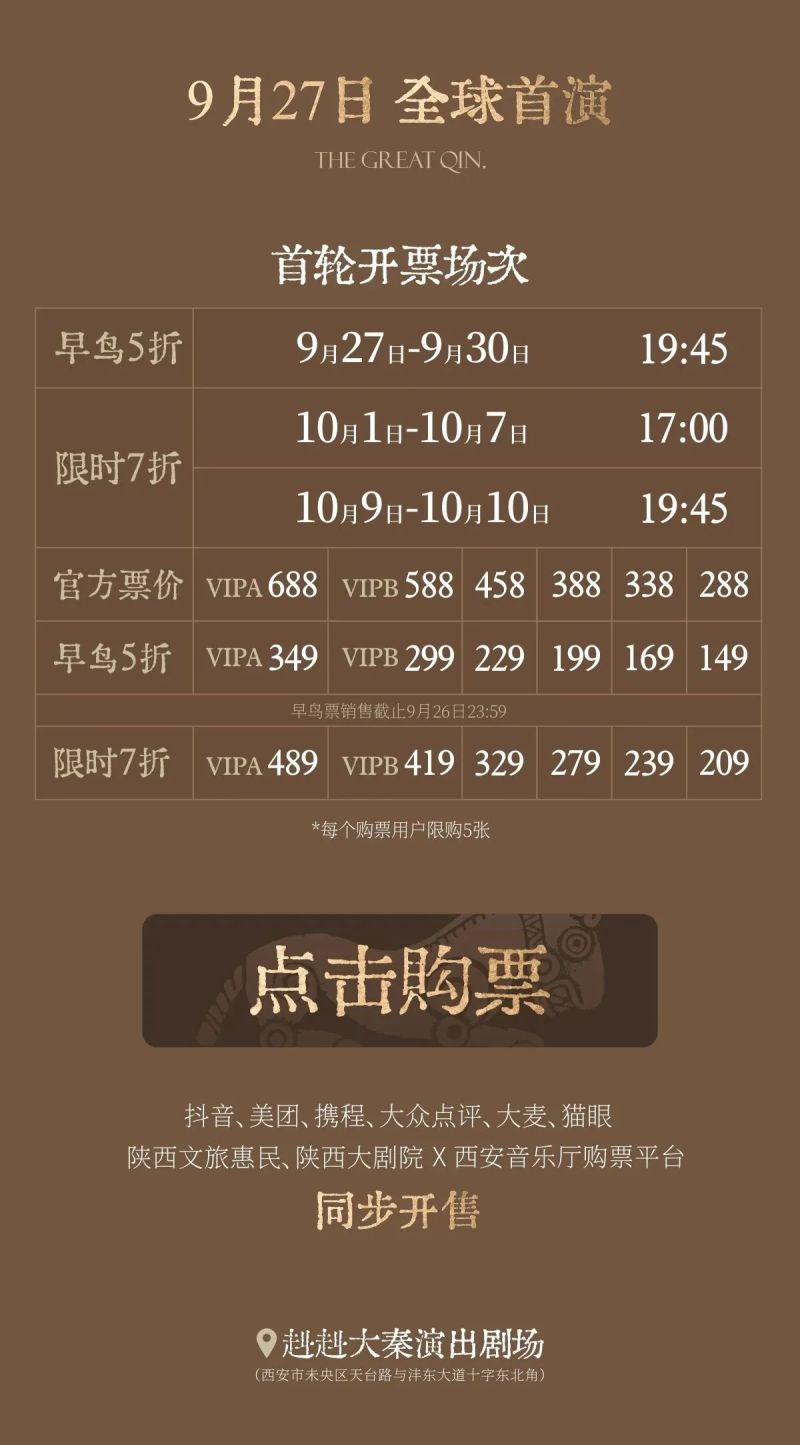 史诗幻境演出《赳赳大秦》 今日开票