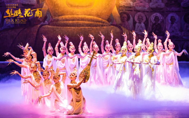 《丝路花雨》是由甘肃省歌舞剧院精心打造的大型舞剧,自1979年首演以来以其独特的艺术魅力,引领了一场跨越国界的国风新浪潮。舞剧以唐朝为背景,将敦煌壁画以生动的舞姿“复活”,讲述了老画工神笔张与女儿英娘在丝绸之路上与波斯商人伊努斯结下不解之缘的故事,大气磅礴的布景、绚丽多彩的舞蹈、扣人心弦的剧情,交织成一幅幅瑰丽多彩的古丝绸之路画卷。