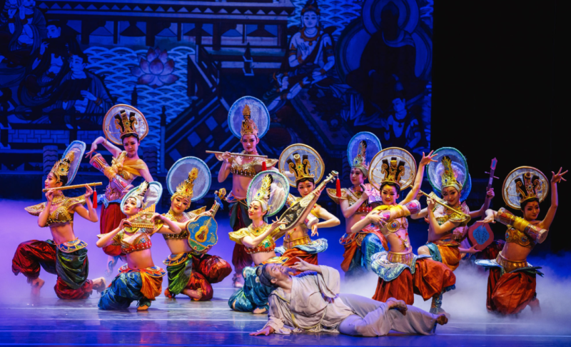 该舞剧被誉为“活的敦煌壁画,美的艺术享受”和“中国民族舞剧的典范”,它精湛地复现了敦煌壁画中那些不朽的经典舞姿。舞台上,飞天之轻盈、反弹琵琶之奇巧……这些原本静默于莫高窟壁画中的曼妙形象,被赋予了生命,化作了优雅而灵动的舞蹈语言,逐一在观众眼前绽放。每一个精心编排的动作,不仅是对壁画艺术的生动诠释,更深藏着丰富的文化底蕴与艺术精髓,让观众仿佛穿越千年,亲历那辉煌灿烂的历史长卷。