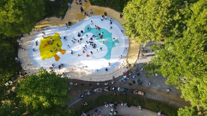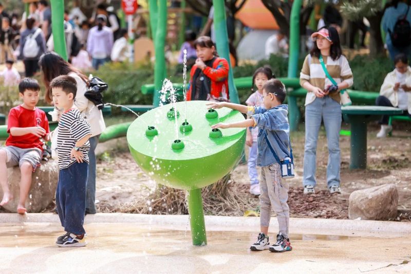 在这里,你可以沿着溪流漫步,在荷叶下休憩,看着小朋友们在草地上肆意奔跑,享受一场快乐与自由之约。如果遇上好天气,还可以与孩子们一起在喷泉中嬉戏,感受玩水带来的欢乐。