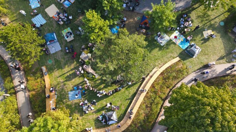 丘光之林占地1.5万平方米,在这片广阔空间里,丘也林谷特别推出“妈咪解放计划”,该计划更多地从妈妈视角出发进行关注与设计,希望妈妈们能够欣赏美丽的风景,惬意的轻松平躺。