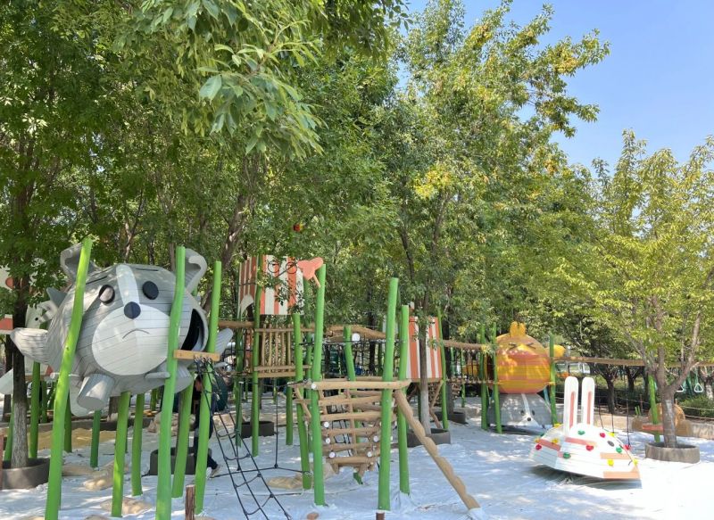 在这里,孩子们可以在林荫之下探索大自然的趣味,感受树叶的纹理、花朵的色彩和鸟鸣的旋律。“丛林魔网”则让孩子们释放束缚,自由穿梭其中,享受攀爬、跳跃带来的快乐与自由。