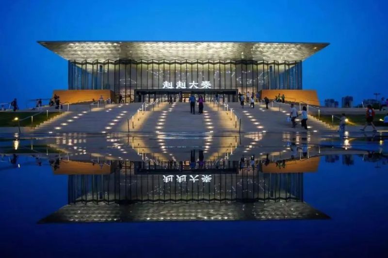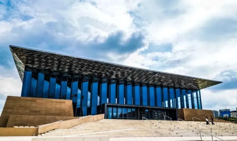 丝路欢乐世界・琴音剧场位于沣西新城,是国内首部“丝绸之路”主题原创音乐剧《丝路之声》的驻场演出地。剧场设计灵感源于中国古琴,外形参考古琴拨动琴弦的动态韵律,将标准剧场与旅游演艺剧场功能创新融合,曾上榜由文化和旅游部评选的2024年“最美公共文化空间大赛”获奖名单。