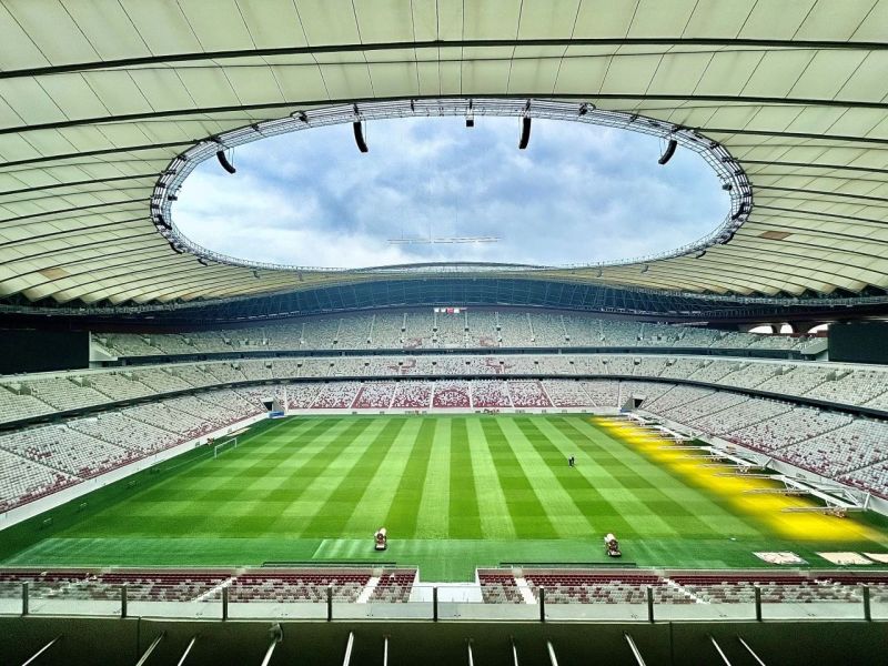 主场馆配套国际标准通风加热草坪,内设62个VIP包厢和1个中央主席台,固定座席6万座以及360度均匀体育照明。通过超高马鞍形沉浸式看台,高、低区两圈近千平方米环绕屏幕、超大双端屏,FIFA标准声学音响,打造国际顶级声光电系统形成沉浸式观赛体验。