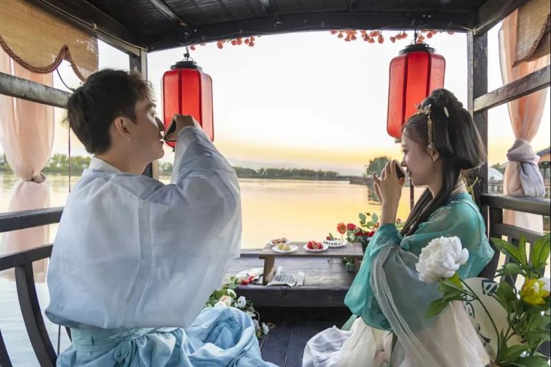 在小镇的茶速生活馆中,遍布诗经文化元素,再配上古色古香的桌椅和精美的茶具,让茶馆内充满典雅气息。“诗字蒲团经卷,烧香汲水烹茶。”身着衣袂飘飘的汉服在这里煮茶,气度顿时风雅。当炉火燃起,茶叶在壶中翻滚,腾腾热气弥漫开来,时间也跟随着茶香放慢了脚步。
