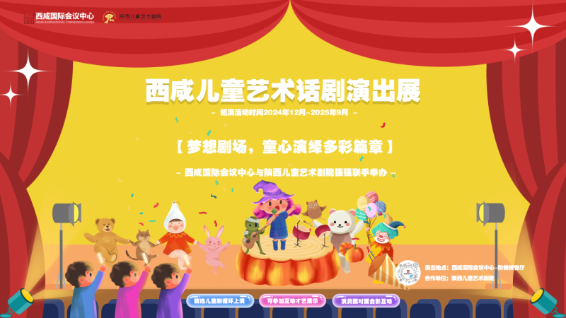 本次演出由西咸国际会议中心与陕西儿童艺术剧院联合举办,从2024年12月一直持续到2025年9月,每月都将上演一场主题儿童话剧,敬请期待。