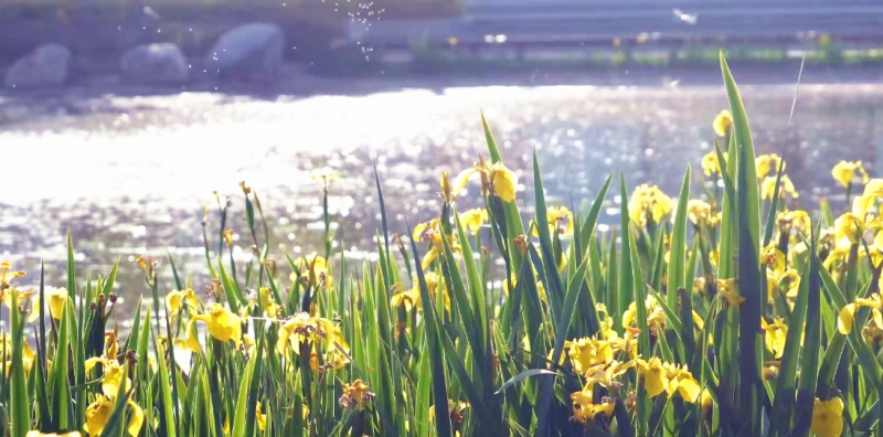 ➤打卡亮点:黄菖蒲与碧水晴空,构成莫奈油画质感。