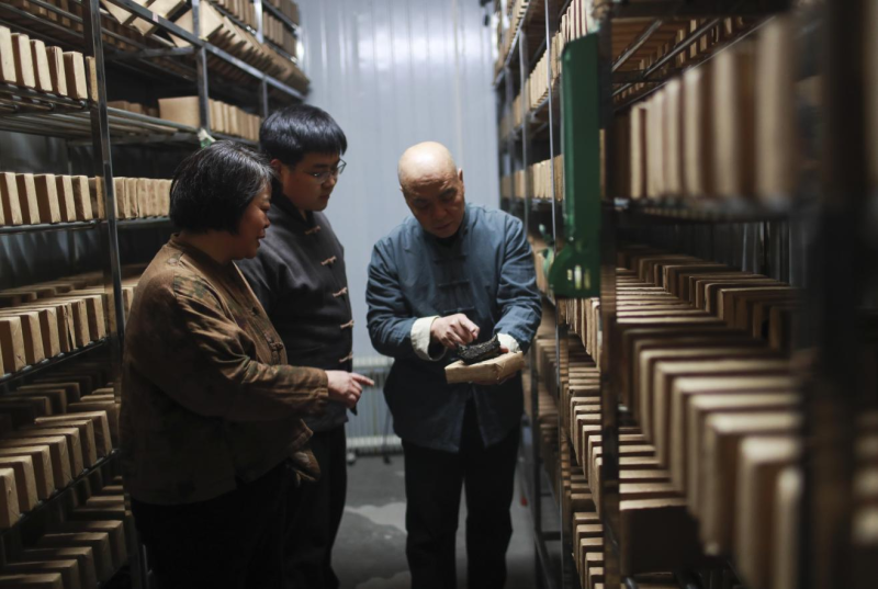 如今,工厂制作工艺在传承基础上优化,变炒为蒸,火候更均匀稳定,还新增了不少工序。马红艳介绍:“将黑毛茶制成金花茯砖茶后,增加工序得到‘散发花’,再经加工形成更多形态。”升级后的“29+”工序,为消费者带来更多选择。