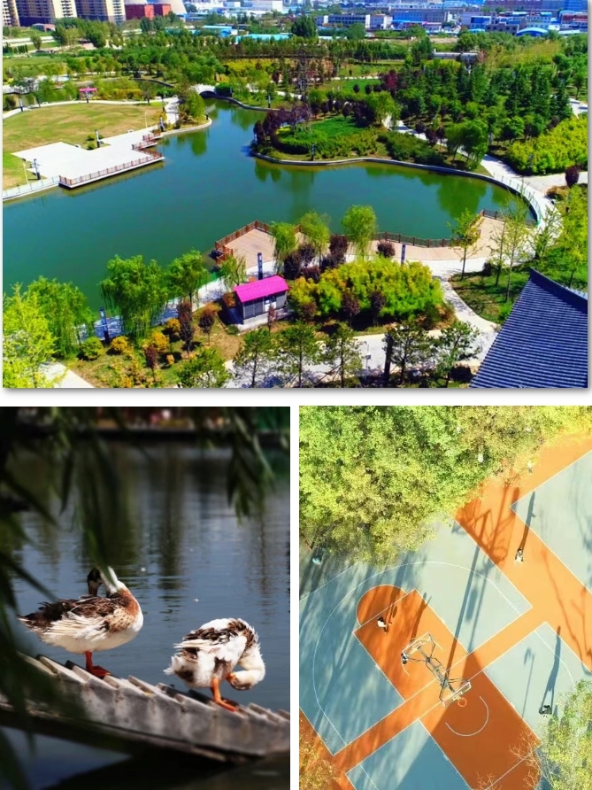 踏入公园,穿过大气的阙楼,清澈的湖水便映入眼帘,野鸭在水中自在游弋。不想散步的话,带娃家庭可以前往主题乐园,水上充气城堡、卡丁车、碰碰车等游乐项目,让孩子们玩得不亦乐乎。公园的健身园区也十分受欢迎,各类健身区域通过智慧健身步道串联,运动的同时还能欣赏公园美景,活力与颜值兼具。