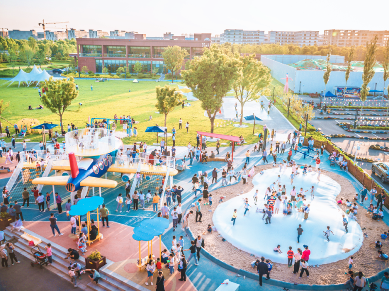 露营区附近,“我们的飞行日记”主题乐园超有趣。滑梯通向童话世界、攀爬网见证孩子的勇气、沙池里也藏着无尽欢乐、卡丁车上满是无忧无虑的童年。欢笑声和花丛中的快门声交织在一起,奏响夏日的乐章。