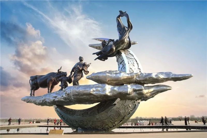 以月牙造型展现牛郎织女重逢场景,线条生动。骑行抵达后,与雕塑互动仰拍,或让雕塑与湖景同框、自己作前景,轻松拍出故事感大片。