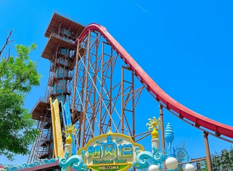 海底世界区域的明星项目飓风塔,拥有三大滑道,最高65米高空垂直坠落,急速下滑时风声呼啸,体验自由落体般的失重快感,绝对是勇敢者的游戏。
