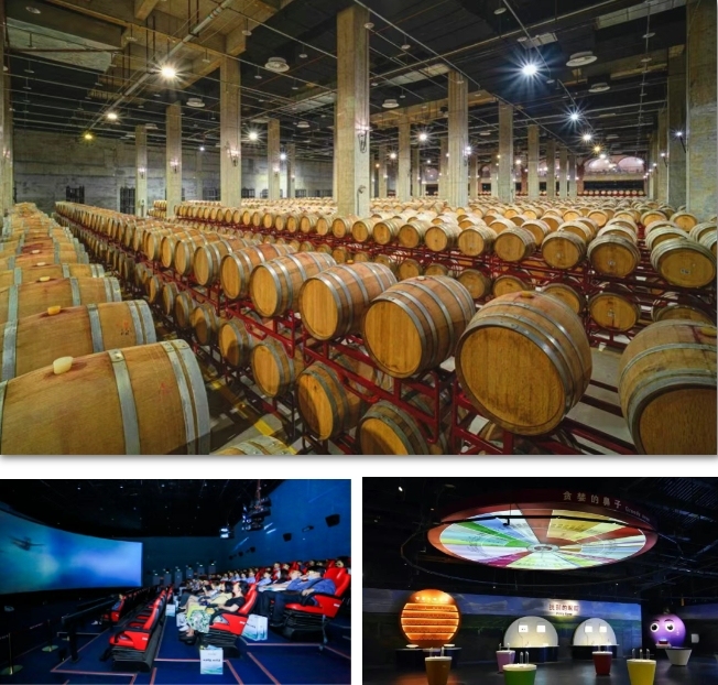 酒庄建有生动有趣的4D影院、科普展厅和开放式的生产车间,酒庄还拥有亚洲最大地下酒窖,存放着20余种不同产地、不同纹理、不同烘烤程度的橡木桶,你可以在这里深度探索葡萄酒酿造奥秘,详细了解葡萄酒文化。