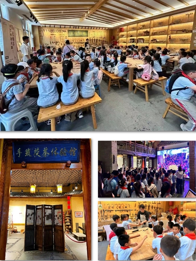 茯茶镇的研学之旅,则是一场茶香与非遗交织的感官盛宴。手筑茯茶体验馆内,非遗传承人亲授称茶、蒸茶、筑压技艺,让孩子在压制茯砖茶的过程中,触摸 “茶内金花”的传统工艺奥秘;木艺工坊里,榫卯拼装、古法抄纸等课程,让《考工记》里的智慧从课本走向指尖。
