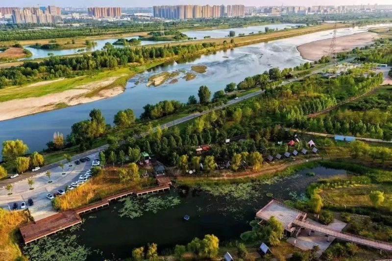 能源金贸区的沣河金湾沙滩分南北两区,沙子细腻柔软,是西安人私藏的浪漫打卡点,傍晚的“橘子海”更是出片天花板。