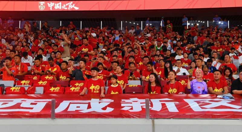 比赛结束后,全场大合唱《歌唱祖国》更让气氛推向高潮。“下半场,中国队接连进球时,我们一群人一起欢呼,这种氛围太燃了!”在南看台观赛的95后球迷李阳说,进球瞬间他和陌生人击掌欢呼,让周末观赛多了一份专属记忆。