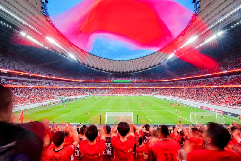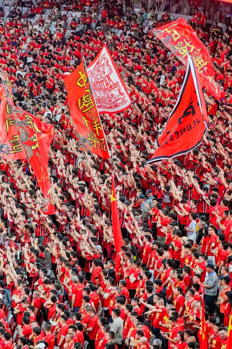 走进比赛现场,满眼红色席卷视野,90分钟不间断的呐喊助威让赛场化作红色海洋。每当球员完成边路传中,现场观众便振臂呐喊,线上直播间评论区滚动更新;每当球队进球,现场五星红旗全场挥动、直抵夜空,场外社交媒体相关话题也掀起热潮。